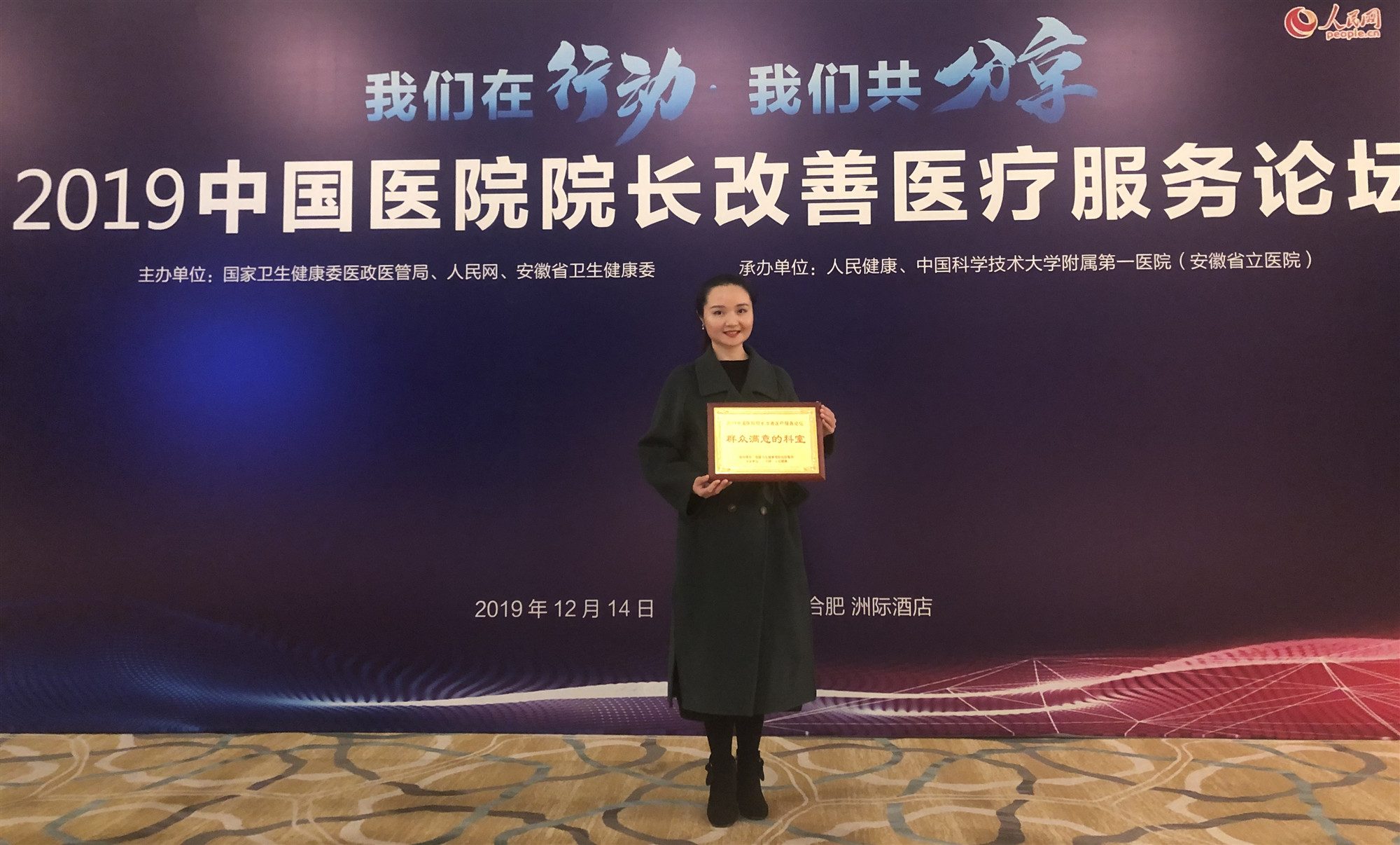 2019年12月14日,国家卫生健康委医政医管局在安徽合肥举办“我们在行动、我们共分享-2019中国医院院长改善医疗服务论坛”,中南大学湘雅三医院呼吸与危重症学科为湖南省唯一一个入选“群众满意的科室”。呼吸与危重症学科护士长杨阳作为代表参加授牌仪式。