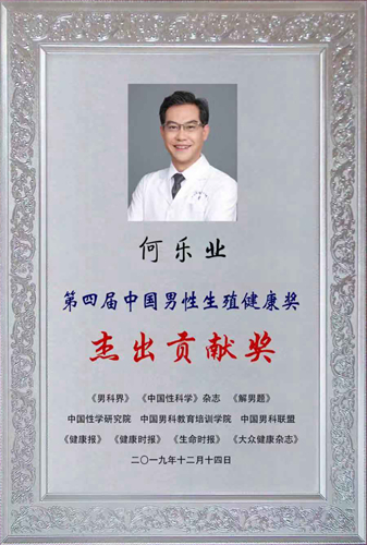 目前,何乐业教授担任湖南省医学会男科学专业委员会主任委员、中华医学会男科学分会委员、中国医师协会男科医师分会常务、中华医学会男科学分会前列腺疾病学组副组长、中国医师协会男科医师分会男性外生殖器整形与康复学组副组长、中南大学前列腺疾病研究所所长及中南大学性健康研究中心主任等众多学术任职,带领湖南省泌尿男科同道长期致力于男性健康事业。他表示,此奖项不仅仅是对本人的鼓励和肯定,更多的是对湖南男科同道们的鼓励和肯定,更是一种鞭策,湖南泌尿男科界将不忘初心、牢记使命,为提高湖南男性健康水平继续奋斗。