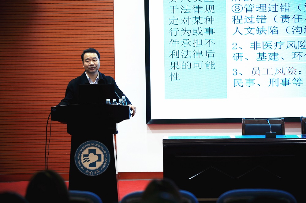 12月16日下午,中南大学湘雅三医院医护人员法律法规专题培训在外科楼二楼学术报告厅举行,特邀请湖南省卫健委法制处处长曹跃斌做专题报告,医院临床、医技主任、护士长和总住院等200人参加。医院副院长欧阳文作主持。