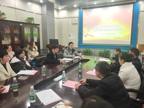 为进一步弘扬青年文明号“敬业、协作、创优、奉献”的精神内涵,激励医院青年立足本职工作、践行职业文明、创造一流业绩,12月23日,中南大学湘雅三医院团委为荣获2017-2018年度“全国青年文明号”的放射科集体举行授牌仪式,并就青年文明号创建工作召开培训会。医院党委委员、副院长吕奔,放射科主任王维,放射科青年文明号号长廖云杰,国家级、省级青年文明号荣誉集体负责人及号长,院团委委员,部分校级、院级青年文明号负责人及放射科青年代表等40余人参加了此次授牌仪式暨培训会。