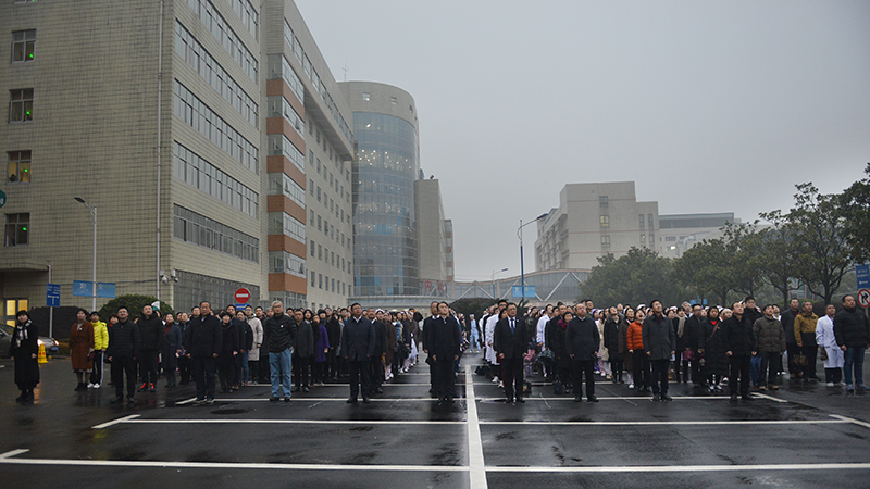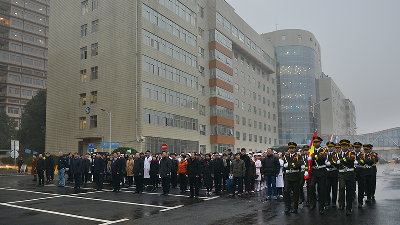 2019年12月31日7点30分,湘雅三医院举行元旦升旗仪式。全体院领导,党总支书记、党支部书记,教研室、临床医技科室正、副主任、护士长,行政后勤正副主任,班组长,教职工、离退休和学生党员代表在蒙蒙细雨中参加升旗仪式,向国旗致敬,为祖国祝福,共迎新年。