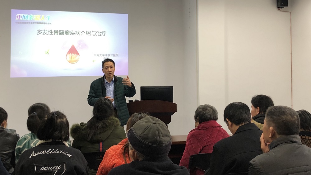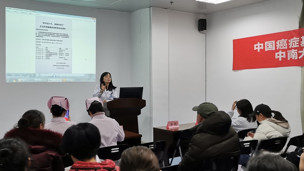 12月31日,中国癌症基金会血液肿瘤基金会联合中南大学湘雅三医院血液内科,在41病区示教室举行以“新年送大礼,健康伴您行”为主题的多发性骨髓瘤患者健康教育会。正在本院治疗和已出院的部分多发性骨髓瘤患者及其家属、血液内科部分医护人员参加,血液内科副主任李昕教授作主持。