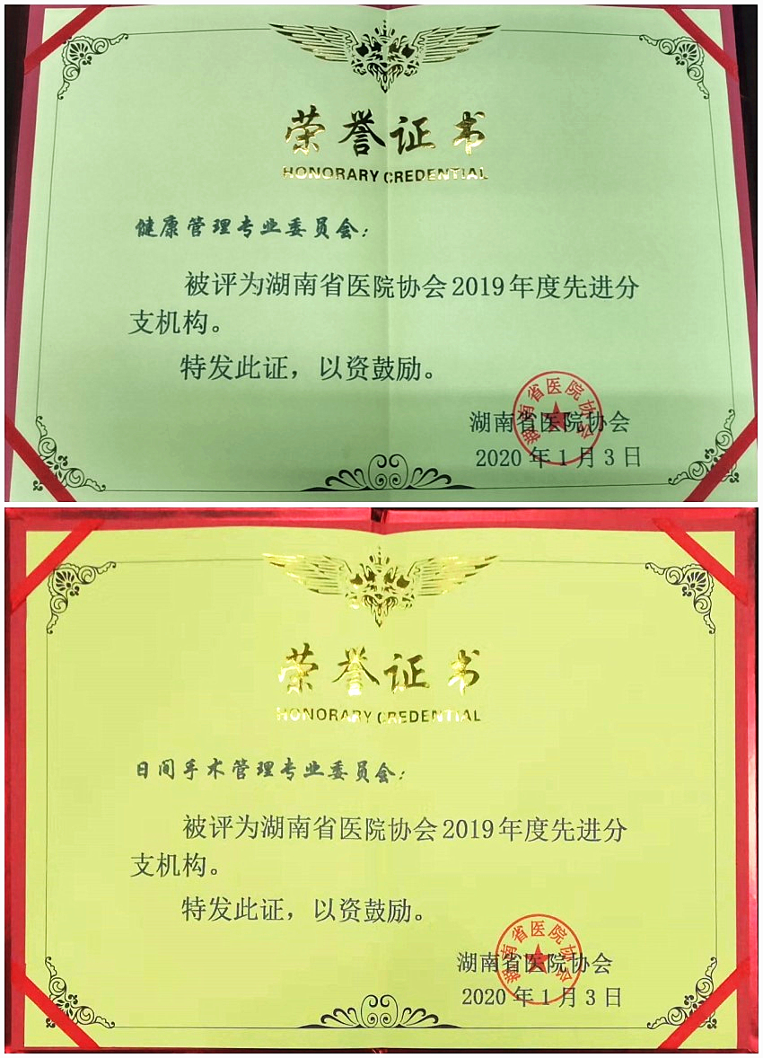 1月9日,湖南省医院协会召开2019年度分支机构总结表彰会议,宣布《湖南省医院协会关于表彰2019年度先进分支机构的通报》(湘医协字[2020]2号文件)并对年度先进分支机构进行表彰。挂靠中南大学湘雅三医院的健康管理专委会和日间手术管理专业委员会被评为先进分支机构。表彰大会由省医院协会副会长兼秘书长李爱勤主持。