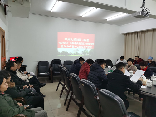 党委副书记、纪委书记张劲强通报了1月17日中南大学党委副书记、纪委书记伍海泉在学校纪委会议上传达十九届中央纪委四中全会精神有关情况,并带领大家学习了习近平总书记在十九届中央纪委四次全会上的重要讲话。他要求,医院纪检干部要加强政治意识和身份意识,带头学习贯彻十九届中央纪委四中全会精神,在自我监督、自我约束上作表率,并布置了2020年医院纪检监察有关工作:一是全面学习贯彻十九届中央纪委四中全会精神,认真履行全面从严治党监督责任;二是集中精力抓好监督执纪问责主责主业,做好“监督再监督”工作,重点监督基建、医保、耗材、药品等领域,约谈将成为常态;三是持之以恒加强自身建设,组织纪检干部集中学习,强化纪检干部身份意识和身份认同;四是抓早抓小,党风廉政宣传教育要做到全覆盖,组织新任护士长、中层业务干部集中开展警示教育。