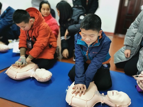 紧接着,孩子们在培训老师的指导下进行了操作训练,在CPR培训中授课老师准备了多个专业人体模型让大家实践操作,以掌握正确的按压频率和深度,练习完后并进行了严格的考核,使每个孩子能真正的学有所用。
