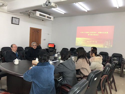 1月17日上午,中南大学湘雅三医院在综合楼三楼一会议室举行援非援疆人员家属代表座谈会,党委副书记、纪委书记张劲强,党委委员、副院长朱晒红出席了座谈会。人力资源部、工会代表,现援非援疆医务人员的家属代表,以及所在分工会的分工会主席一同参加。