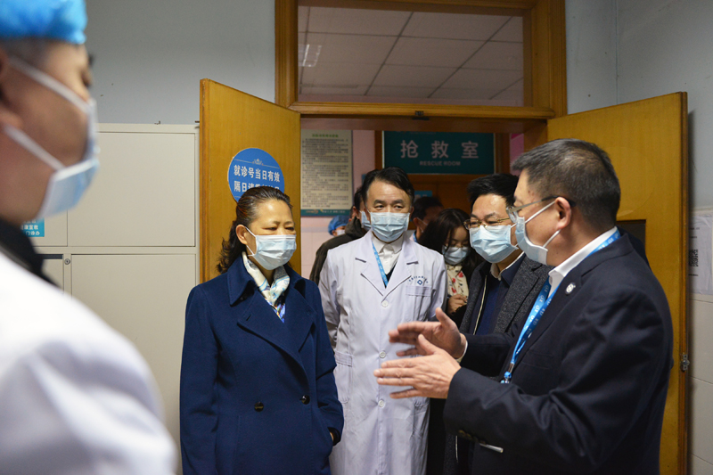 在儿科门急诊,田红旗和医务人员一一握手,她详细询问了医护人员的工作、生活情况、春节值班情况,感谢大家一年来的辛勤劳动和和节日期间的恪守尽职,并祝大家新春快乐。