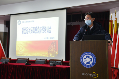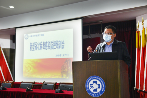 为做好新型冠状病毒感染肺炎防控工作,切实保障患者及护理人员的身体健康和生命安全,1月29日上午,中南大学湘雅三医院护理部组织召开新型冠状病毒防控培训会议。医院院长张国刚出席,护理部、护理教研室成员及全体护士长参会。会议由党委委员、副院长欧阳文主持。