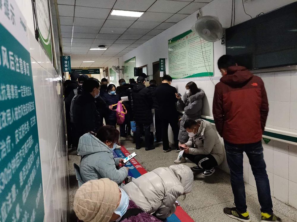 内科诊室大量患者排队
