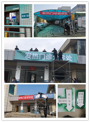发热门诊开始运转后,门诊及全院标示指引、区域划分标记、各类温馨提示等标示全部需要整体规划布置,后勤保障部配合门诊部、医务部、院办,按照各个新的就诊区域启用,根据现场需求及实地确认,完善标示方案,几乎跑遍了市区内营业的图文复印店,终于按时完成各类标识工作,更新了发热分诊区域标示规划及发热门诊就诊场地指引分流。