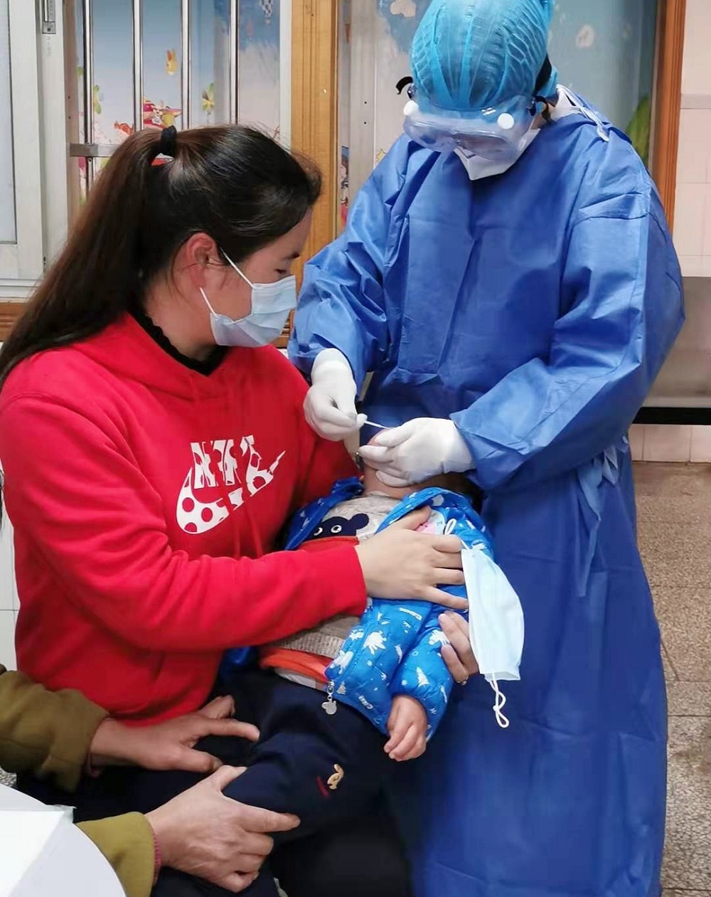 护士罗伟伟正在给患儿采样