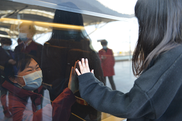 黄辉是副主任护师,护理学在读博士,有着丰富的临床护理教学经验,此前曾担任全国大学生临床技能操作大赛护理培训负责人,为了做好疫情防控,她一直负责医院护士防护技能培训,她表示此次组队紧急,队内许多年轻护士疫情防护方面的经验还不足,她此行最大的目的便是确保每一位在前线的医务人员穿脱隔离服、佩戴口罩等个人防护措施过关到位。黄辉的丈夫是医院临床检验学教研室副主任,春节期间也一直在检验第一线,在高铁站送妻子上前线,腼腆的他一直没有吱声,只是皱着眉默默地跟在后面,眼神一直追随着黄辉,只有临上车前黄辉搂着丈夫和女儿合影的时候他才舒展眉眼,黄辉说:“没什么大不了,我们两口子都是医院职工,非常理解!”