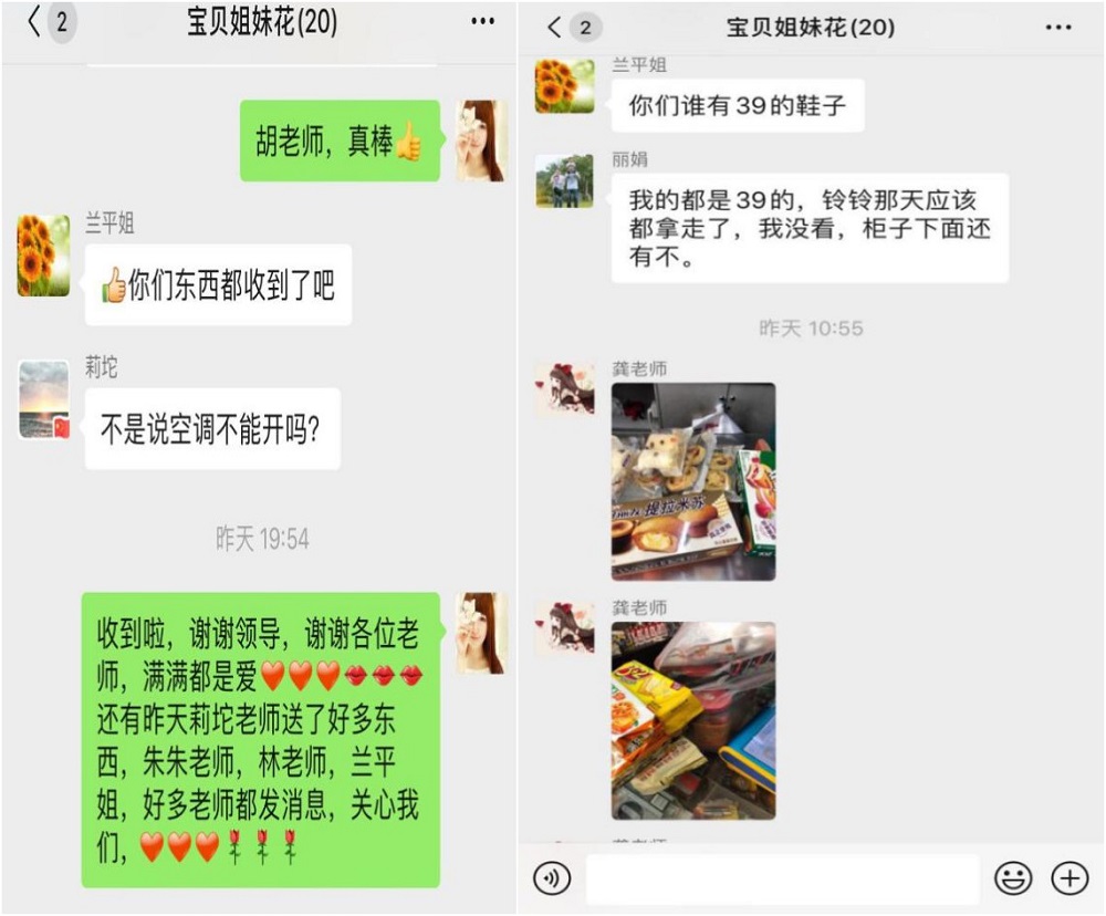 临行前龚丽娜老师和彭莉老师为我们精心准备各种物品,并帮助我们打包行李。还有林婉丽老师、朱卫红老师、郭兰平老师、李莉老师等等都为我们准备了好多暖心物资……其他老师也纷纷发来关心嘱托的消息,让我们感到倍感温暖,使我从内心感受到:我们不是一个人在战斗!我们的后面站立着整个神经内科、整个湘雅三医院!在这里,我代表个人和医疗队的队员对你们表示深深的谢意,我爱你们!前线请交给我们,家交给你们我也放心。让我们一起加油!