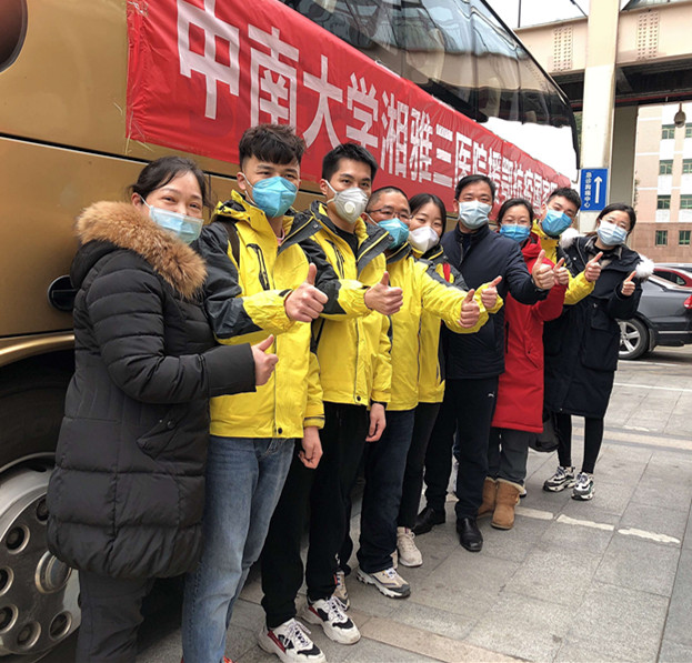 春节期间武汉新型冠状病毒肺炎疫情爆发,并迅速席卷全国各地,使得多少个家庭没有团圆。2月7号晚中南大学湘雅三医院接到国务院应对新型冠状病毒肺炎疫情联防联控机制(医疗救治组)«关于组派部分委属委管医院医疗队援助湖北应对新型冠状病毒肺炎疫情的函»。心胸外科积极响应党的号召,迅速组织报名,而最快响应的是来自科室的两棵“科草”朱嘉伟护师和柏圳雄护师。作为心胸外科唯一的两个男护士,在平时的工作中承担了很多危重病人的工作,朱嘉伟护师作为呼吸治疗师,对于肺康复以及呼吸机的使用尤其擅长,柏圳雄护师轮转过多个重症监护室,对于处理危重病人有着丰富的经验。作为心胸外科这次出征武汉唯一的女护士彭彩霞护师,平时工作严谨细致,温文尔雅,也是科室技能操作的“扛把子”。还有刚从北京进修回来的朱加亮医师,放弃了和家人难得团聚的时间,主动请缨加入到队伍中。2月8号(元宵节)下午130名“白衣战队”出发驰援武汉。