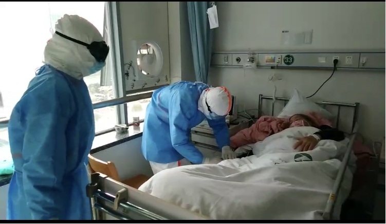 医院驰援武汉医疗队员顺利抵达武汉后,我们护理人员被分为6个小组,来自急诊科、神经外科ICU、ICU、泌尿外科等科室的15名护理人员组成第五护理小组,其中刘艳护士长作为组长。在刘艳的组织、带领下,我们第五护理小组所有成员拧成一股绳,团结一致,切切实实地完成了每一班临床护理任务。每次上班途中,她总会一遍又一遍地向大家强调防护要点,讲解护患沟通技巧,时刻提醒队员加强患者的心理护理,想患者所想,给患者所需。