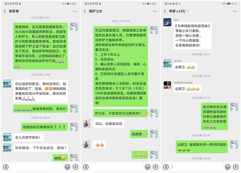 此刻,我真的要感谢我的爸爸妈妈,是您们一如既往在背后支持着我和姐姐的工作,感谢医院领导们给了这样一次机会,让我能和所有的同仁们在疫情的一线一起战斗,还要感谢科里的男神们女神们,扛下了科里的所有工作,免去了我们的后顾之忧。感谢所有的亲朋好友对我的关心和祝福,你们的殷殷期盼,让我们拥有了前行的动力。