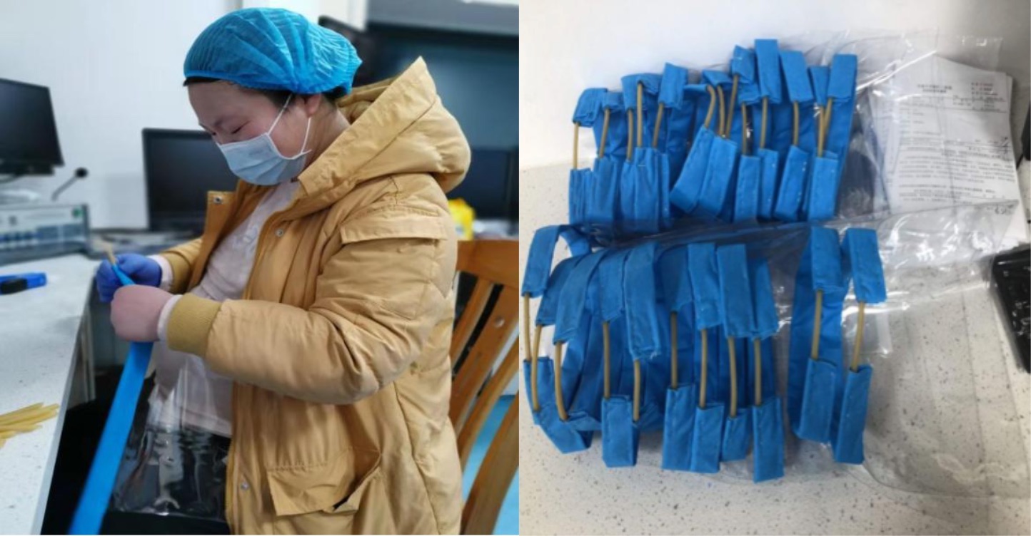 为了缓解防护物资日渐紧缺的状况,放射科自己动手,一批“能工巧匠”,各显神通:还有一个多月就要生产的陈维,利用压脉带、透明文件夹,挺着大肚子为大家缝制“放射科版防护面罩”;李心园、李小玲为科室人员购置雨靴和雨衣做“战甲”……抗疫期间,所有CT、MR、普放照片岗位的一线战士们,在防护物资紧缺的情况下,科室“节衣缩食”,尽最大的可能,不浪费一套防护服、一套隔离衣、一副手套、一个口罩。