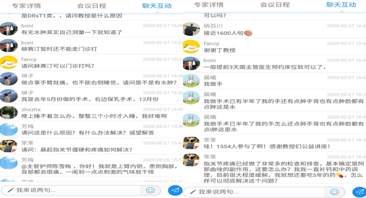 最后,各位老师针对在线上聊天互动区患者留言问题也给予及时在线解答。