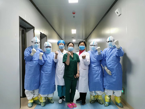 此行的11名战友中,作战经验最丰富的是重症医学科副主任肖雪飞副教授。在出征武汉之前,她曾在湖南郴州与新冠病毒交锋数日。此前的实战经验让她在新冠患者病情判断及救治施诊方面更有自己独特的见地。患者什么时候该上高流量给氧,什么时候该给无创呼吸机辅助通气,什么时候该进行液体复苏,她都胸有成竹,精准施策。她每天坐上第一趟班车横穿武汉街头,第一个披上战袍,直奔隔离病房。她透过眼镜护目镜面屏多重折射的视线定睛查看每一个患者。她用口罩和防护服都掩盖不住的嗓音询问每一个患者的情况,侧耳倾听每一个患者的声音。一轮查房下来往往不下三个小时,忙的时候总忘记了下班忘记了吃饭,而患者的病情,用药,营养,睡眠,情绪她却一一记在心里。患者李阿姨说:“肖教授是我见过的记性最好的医生,我和她讲过的每个事情她都记得清清楚楚。”用心作战,战果频传,她带领的医疗组又传来重症患者康复出院的捷报。 战场干将杨兵厂早在医学生时代就志愿参加抗击非典,和SARS病毒过了招,十七年后作为重症医学的教授再与新冠病毒狭路相逢,他表现出来的是智慧勇气和担当。一次从外院转来一名78岁的新冠肺炎患者,心率快到140多次每分钟,情绪焦躁,呼吸急促,脸色紫绀,情况十分危急。杨兵厂副教授迅速查看生命体征、分析血气结果,一面下达医嘱调整循环状态一面当机立断决定进行气管插管。说时迟那时快,在杨兵厂、黄伟、尹欣林三位医生共同协作下,仅用了短短几分钟的时间就完成了气管插管并顺利实施有创呼吸机辅助通气,患者病情迅速转危为安。危急时刻,杨教授总能处变不惊,化险为夷,尽显大将风范。 武汉之战已经持续了20多天,我们一直与武汉人民同呼吸共进退。“远征军”的目标是疫情不退,我们不撤。病毒歼灭战不获全胜绝不轻言成功。