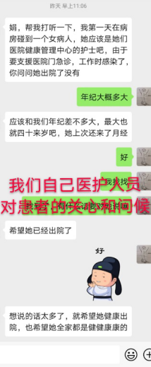 昨天进舱了解患者的情况,组里的小伙伴们,都给我布置了特殊的“任务”:哪一床不怎么吃东西,要我劝他多少要吃点;哪一床又想家了,让我给他做心理疏导。作为护理工作者,在自己休息的时候却从未忘记自己的工作和使命。