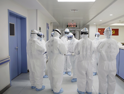 在新冠病房实现全程管理,需要的不仅仅是专业知识与技能,更多的是医护人员的奉献与关爱。每次看到护理队伍在防护服下包裹严实,一道道门的打开,一层层的推进,进入那一个病人等待着我们的区域,没有谁能确保万无一失,但没有谁因害怕而临阵逃脱,反而越战越勇,一群80、90后用知识、能力、爱去守护着这一群80+,90+。