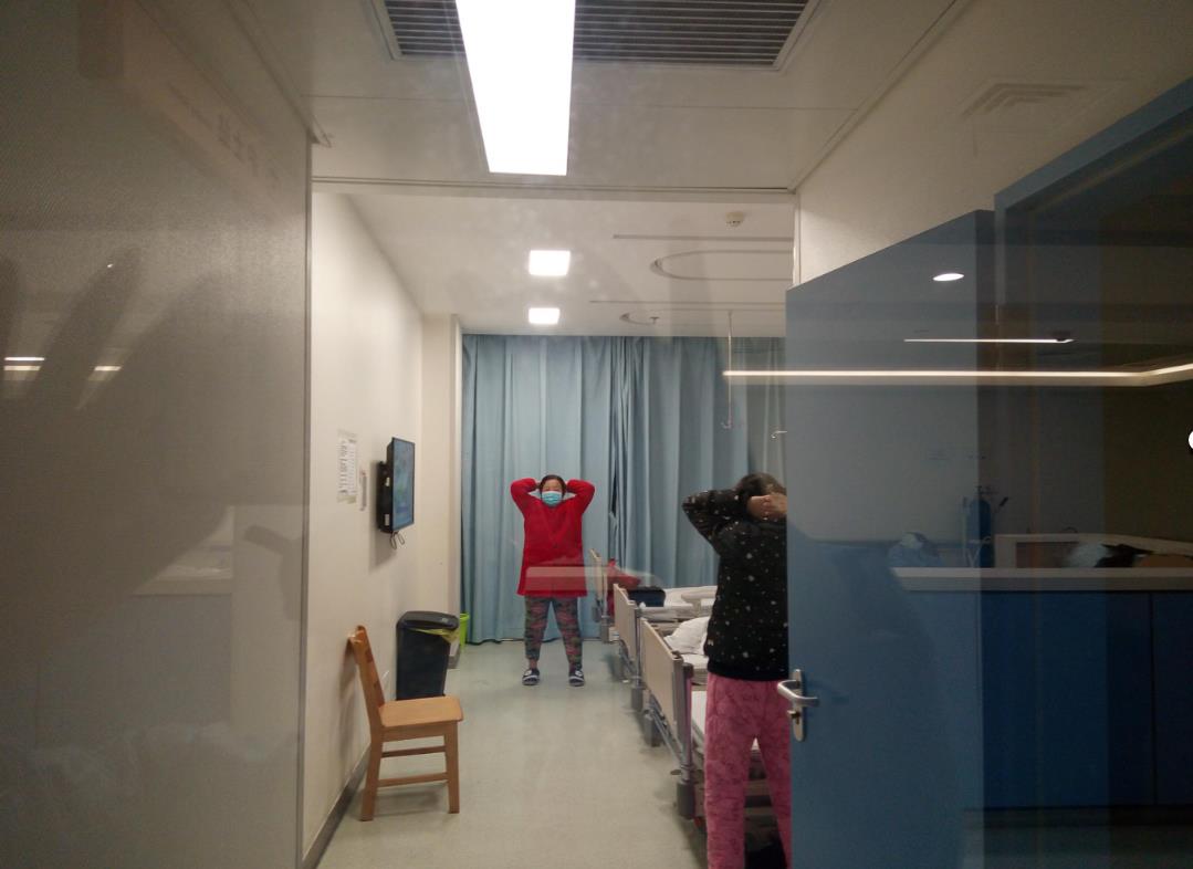 饭后一个小时李守根又开始了“播音员”的工作:“亲爱的患者朋友,你们好!首先让我们一起恭喜1床阿姨出院,等下就会有车接您!同时也请大家相信所有的医护人员都在尽全力帮助你们,让我们一起努力战胜病魔!大家休息好了,可以现在调整一下,5分钟后我们会教大家做一些锻炼肺功能的运动。”一下病房就开始热闹起来,能下床的病人在病房慢慢跟着广播的节奏锻炼着,卧床的病人更是“不甘示弱”,跟着李守根一起“吸气,呼气,放松,再来,吸气,呼气……”针对患者特殊情况的广播式宣教,让患者耳濡目染,大大提升了病人的积极性。
