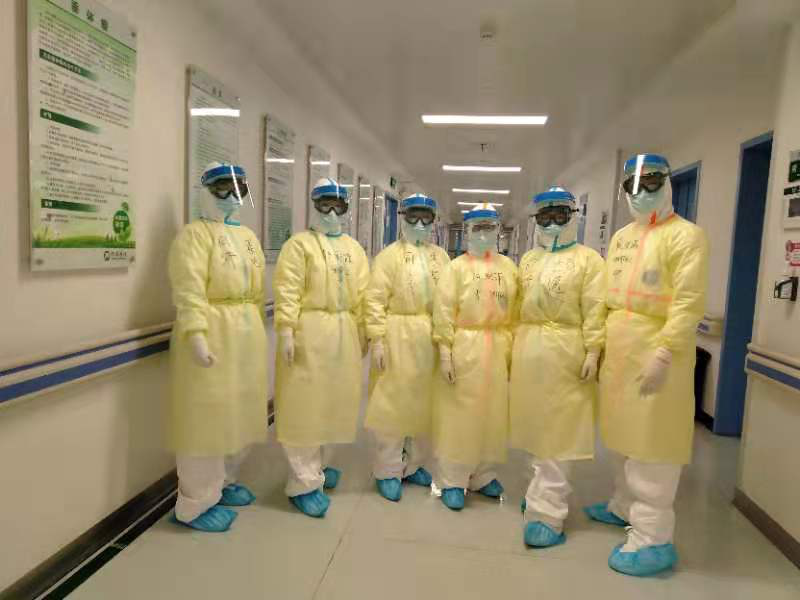 排班的事解决了,上班的事更好说。我很清楚地记得,我们团队上班的第一天,踏进隔离病房,听到里面的老师介绍病人情况。1-24床是相对较轻的病人,25-54床是较重的病人时,组长刘艳老师还没来得及说话,大家就自报家门,“我是中心ICU的,我有重症经验”“我来自急诊科,我也能管重症”“我在隔离病房工作过”……那一刻,我觉得很感动,在风险这么大的战场,没有谁拈轻怕重,每个人都想尽自己所能地去帮助患者,照顾同伴。最终,我们形成了“组长+RT”负责25-30床的急危重症患者(这里的病人最重),一名重症护士加一名普通病房护士,或2名普通病房护士共同管理1-24床,2名有重症经验的护士负责31-54床的工作模式。每次上班,不需要组长发话,我们会根据自身情况,合理搭配,这样的结果就是每个人都是主动选择、自愿分组的。大家的工作积极性都很高,团队的协作性也发挥得特别好。经常有病人对我们说“真的看不出你们是外地来支援的护士,我觉得你们对一切都很熟悉,好像本来就是在这里工作的,对什么都充满了底气,这使我们也有底气了”。一个团队,如果能用自己的精神风貌去激励他人,那这个团队,一定是个极其优秀的团队,我很骄傲,我们护理五队就是这样一个优秀的团队。