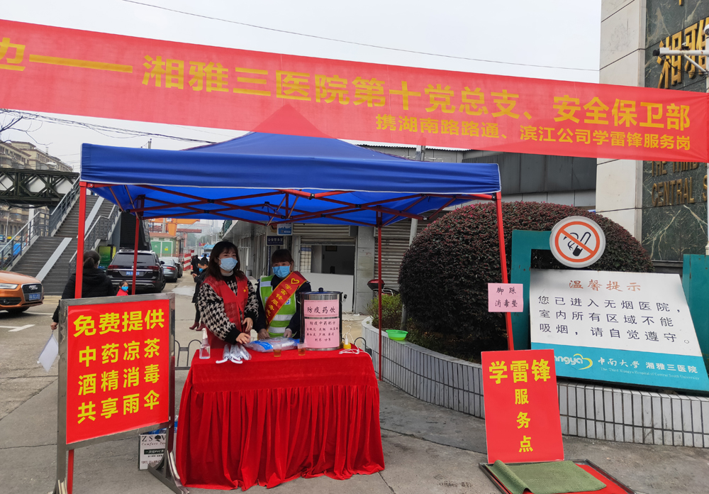 2020年3月5日是第57个“学雷锋纪念日”,湘雅三医院第十党总支、安全保卫部携湖南路路通、滨江保安公司开展“防控战“疫”,我们在你身边” 学雷锋日志愿者活动。