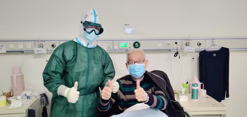 最了解病人病情的、提供治疗方案的是医生,与患者接触最多的是护士。很多病人对自己的身体情况发展趋势不够了解,又担心疾病带给自己身体上的后遗症,特别希望得到医生的权威回答。于是通过我们“临时家属”负责与医生沟通转达患者诉求,尽可能解答他们的疑问。李守根是05床杨叔叔和42床肖阿姨的临时家属,两位患者特别关心自己的身体情况,患者一旦有疑问,李守根就会结合医生的解答与检查结果告知患者,并指导患者相关健康教育,目前两个人均康复出院。肖阿姨说:“是病房里的护士给了我们希望,比自己的家属还亲,把我们照顾得无微不至,等我康复后我要给我们临时家属送锦旗。”黄哲是5床张爷爷的临时家属,刚来病房的时候,爷爷心态并不乐观,因为他的儿子也得了新冠,两个人分到了同一个病区的不同病房,对儿子的担忧更甚于自己,每天总是闷闷不乐,导致睡眠食欲都不佳。黄哲了解后对他进行心理疏导和人文关怀,而且每天把张叔叔的恢复情况和病情及时告知张爷爷。经过几天的努力,张爷爷也慢慢调整了自己的心态,开始对生活有了新的希望,一周前得知儿子可以出院了,很开心地说:“儿子出院了,我也放心了,我相信再过一周我肯定也能出院了。”卢蓉是30床88岁李奶奶和91床的临时家属,两口子就面对面的住着,平日里奶奶最关心的事情不是自己的病情,却是老伴用了什么药,吃了什么菜。卢蓉化身为传话筒,每天不厌其烦地向奶奶汇报着爷爷的饮食和治疗情况……