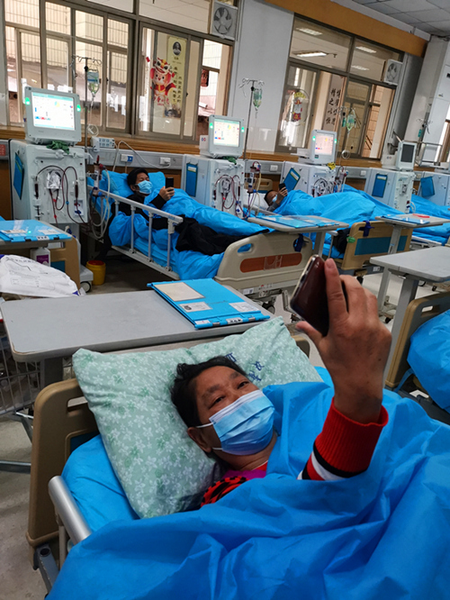 透析患者一边接收透析治疗,一边听讲座,尝试不一样的健康教育方式。还有一部分患者在家里也进行连线,并线上提出自己的疑惑和问题。
