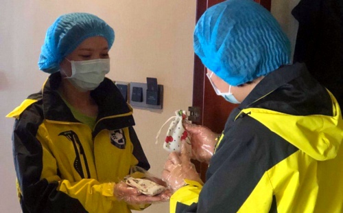 3月18日上午,驰援武汉同济医院中法新城院区的湘雅三医院支援湖北医疗队队员每人收到了一个芳香扑鼻的中药香囊。
