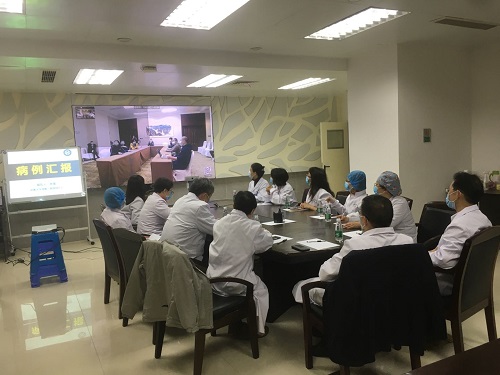 专家组和医疗队在远程会诊讨论