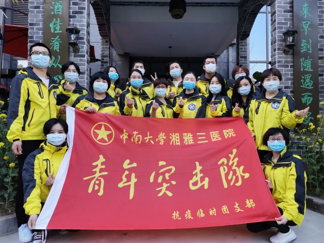 在这场抗击疫情的斗争中,中南大学湘雅三医院数百名青年骨干积极请战,二十余支青年突击队,三十余个各级青年文明号,1000余名青年医务工作者夜以继日地奋战在医疗阵地;130余名医护人员组成的支援湖北国家医疗队逆风而行,其中90后青年40余人,他们组成了中南大学湘雅三医院支援湖北抗疫临时团支部、青年突击队。自2月8日赴武汉抗疫最前线以来,他们不畏风险、艰苦奋战、倾情付出,用青春的汗水守护着广大人民群众的生命健康,用实际行动为打赢疫情防控阻击战贡献青春力量,展现了新时代新湘雅青年的医者仁心与担当有为。