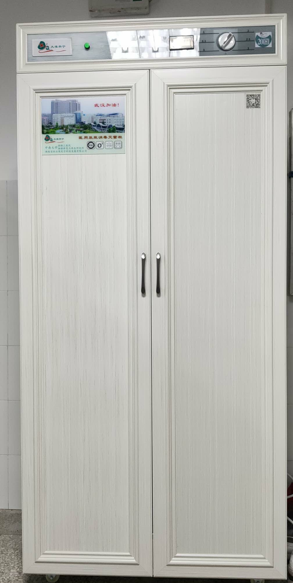 该灭菌柜由湘雅三医院曹科、周建大教授团队与湖南省杜士高电子科技发展有限公司携手共同研发,首批10台样机已于2月27送往疫情防控的主战场——武汉,捐赠给援助湖北的多支医疗队,为“白衣战士”提供防护保障,其功效在武汉已经得到了充分验证,为实现医疗队员援鄂期间零感染发挥了积极的作用。