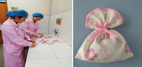 第一步:中药磨粉、剪裁香囊。每袋9g,避疫香囊的制备药物可于医院中药房购入使用。同时剪裁香囊袋备用。