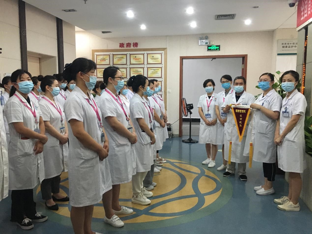 7月2日,在健康管理中心六楼体检区晨会上,主任王建刚、护士长秦春香和副护士长朱小伶郑重地将一面鲜艳的流动红旗颁发给六楼体检区全体职工。这个属于读书时代的独特记忆——“流动红旗”在健康管理中心再一次流转起来。为兼顾抗疫与复工,将疫情防控细节化常态化并着力提升受检者满意度,健康管理中心在各个体检区域间开展“优秀楼面”流动红旗的评比活动。通过营造“创先争优”和“比学赶超”的氛围,增强全科员工消毒隔离意识,提升优质服务能力,细化并落实疫情防控工作部署。