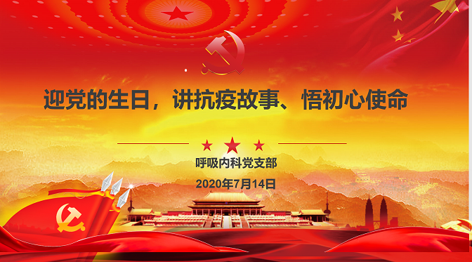 7月,正逢党的99华诞。中南大学湘雅三医院呼吸内科党支部于7月14日在内科楼8楼示教室开展了以“迎党的生日、讲战疫故事、悟初心使命”为主题的党日活动,活动邀请了省内抗疫专家代表、呼吸内科党支部援鄂医疗队员代表、发热隔离病房代表发言,讲述抗疫故事,分享“疫”路心情。活动由呼吸内科党支部副书记杨阳主持。