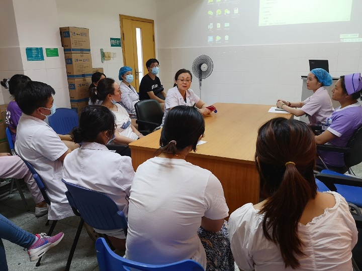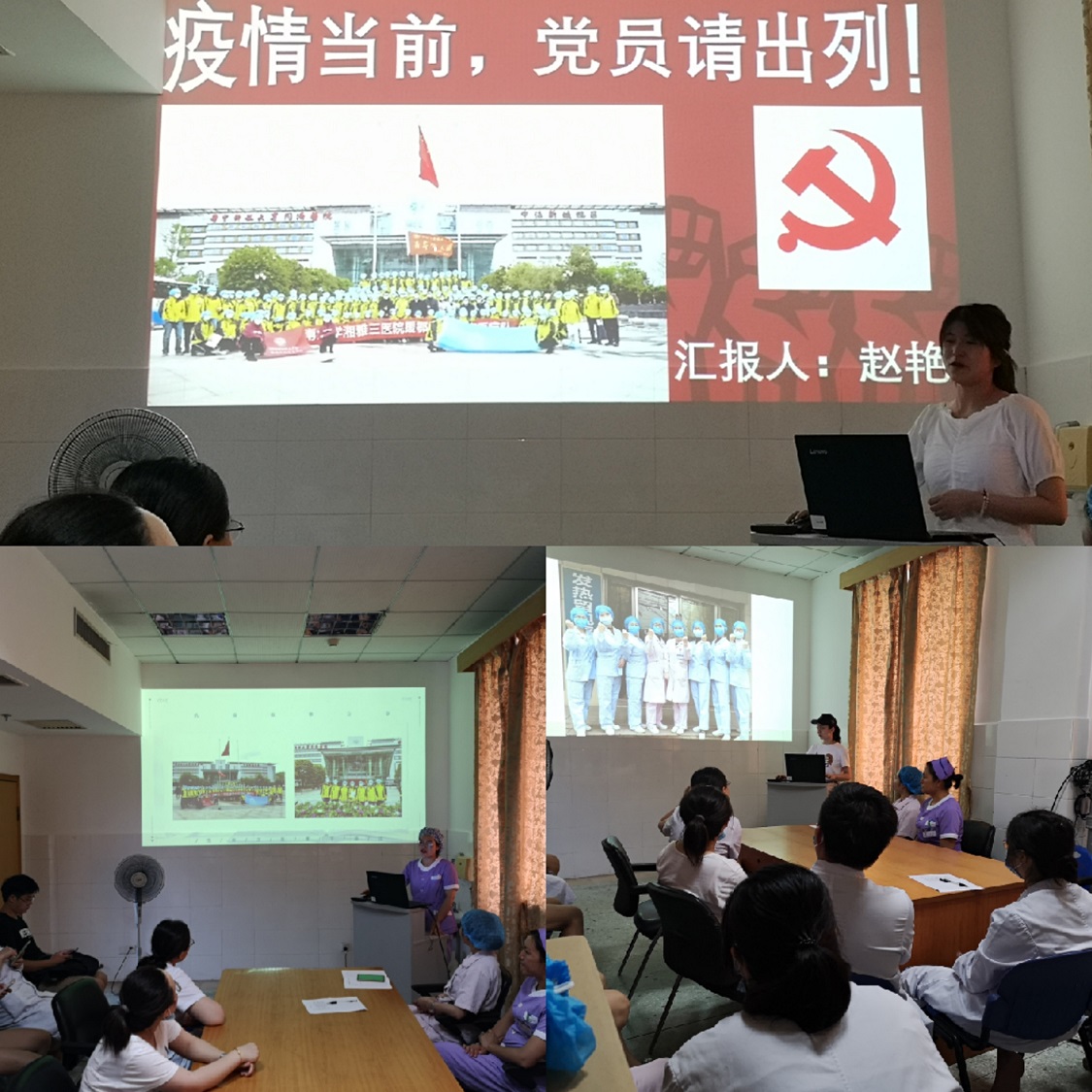 活动伊始,杨阳向与会人员介绍了疫情期间呼吸内科党支部的总体抗疫情况,呼吸内科党支部抗疫主要包含3各部分:专家组督导各市县、本院疫情防控、发热门诊与发热隔离病房诊治、护理本院确诊、疑似患者,援鄂医疗队武汉抗疫。呼吸内科党支部成员活跃在湖南、湖北的抗疫战场,为打赢疫情阻击战发挥了不可或缺的作用。