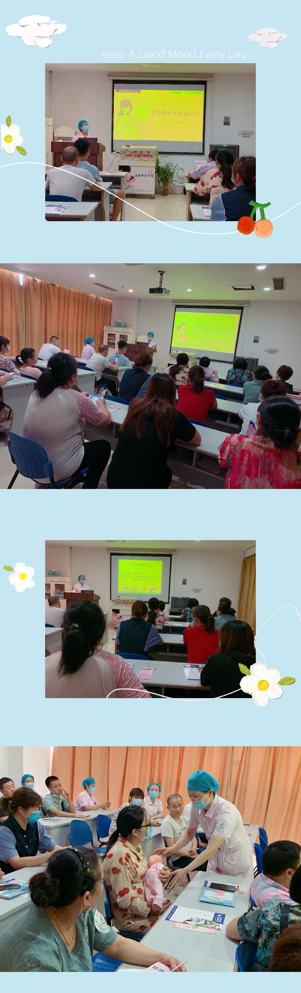 8月5日下午15:00—16:30,产科副护士长何海玉和彭红婴副主任护师在产科示教室为大家带来两场内容丰富的线下讲座,三十余名孕产妇及家属前来学习喂养知识。宝爸们通过学习课件、讲师互动的方式切实体会了母乳喂养过程的不易,也认识了很多喂养的误区,讲师个性化的指导为大家解决了许多喂养难题。