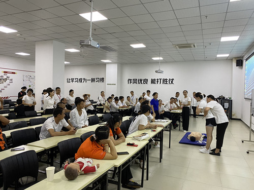 “医护人员走到哪,就把健康带到哪”。在开展主题教育的同时,为更好地促进全民健康与基层急救能力建设,湘雅三医院工会联合急诊120专业人员为铜官窑古镇的40余位工作人员进行了海姆立克急救法及心肺复苏急救法培训。通过培训,铜官窑古镇全体工作人员们学习了医疗健康知识,提升了应急保障能力。