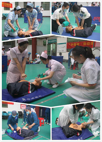 决赛当天,首先由七分工会主席毛赤丹宣读了本次竞赛方案,院工会常务副主席熊晓云介绍了本次大赛的目的、意义并宣布比赛开始。大赛分为4个小组,分别邀请医疗护理8名专家担任本次比赛评委,采用现场双人打分取其平均分数的方式进行,确保了竞赛的公平公正。本次双人心肺复苏技能比赛,主要包括胸外心脏按压和呼吸气囊的使用,考核双人协助急救能力。整个比赛过程紧张有序,分工明确,争分夺秒。从判断意识、启动急救反应系统,到摆放体位、胸外心脏按压、开放气道、球囊通气等,参赛者们配合默契,操作技能规范娴熟,将在场的每个人一下子带入了抢救病人的紧张气氛中。
