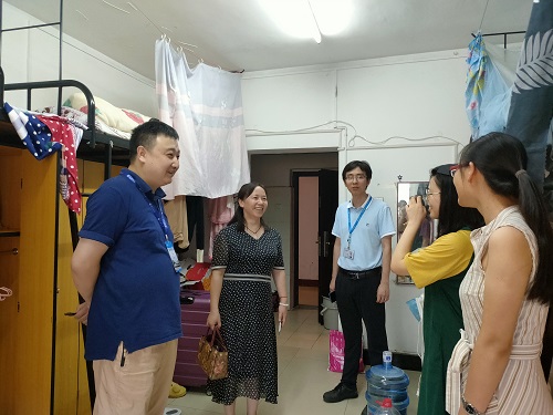 8月22日,研究生思政部主任刘典、研究生部主任袁秀洪以及副主任李夏雨前往新生宿舍区,查看新生住宿环境,并现场办公,对于学生遇到的问题,进行现场答疑,积极协调,迅速解决。