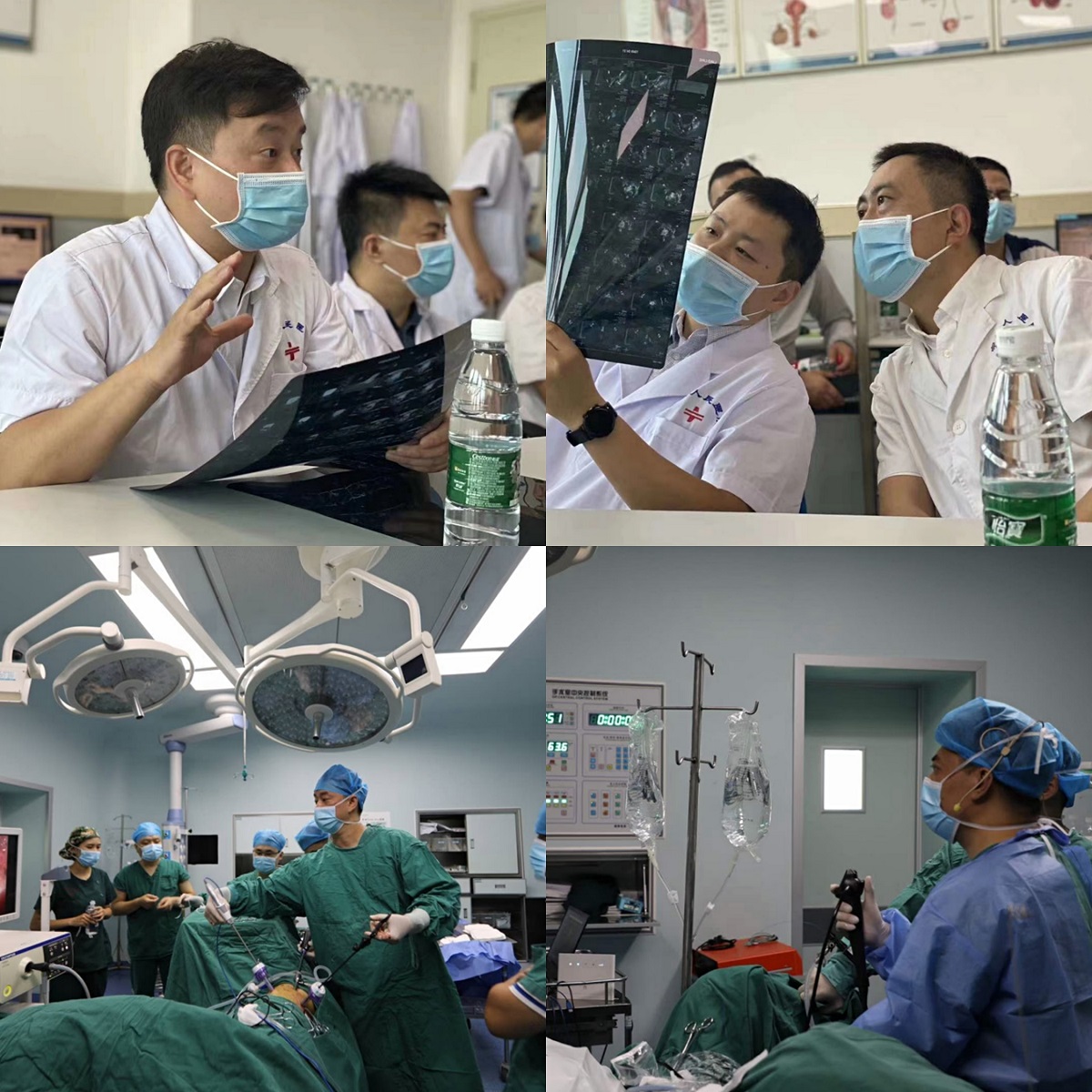 上午8点,湘雅三医院泌尿外科专家团队和宁乡市人民医院泌尿外科团队开始了教学大查房,对疑难病例进行交流探讨。9点,线上同步直播演示各类手术,包括主任医师王龙演示的腹腔镜肾部分切除术、副主任医师尹光明演示的经皮肾镜碎石取石术、副主任医师汤进演示的经尿道前列腺等离子剜除+组织粉碎术、副主任医师谭靖演示的输尿管软镜碎石取石术。