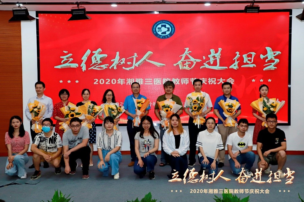 9月9日下午,中南大学湘雅三医院2020年教师节庆祝大会在外科楼2楼学术报告厅举行,大会主题为“立德树人,奋进担当”。医院党委书记何庆南、院长张国刚出席,在院全体院领导、老教授、督导专家代表、各教研室主任、相关职能部门负责人、援鄂医疗队教师代表、骨干青年教师代表和学生代表等100余人参加。党委委员、副院长吕奔主持大会。