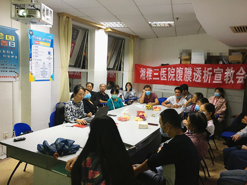 9月25日,为积极响应湖南省医学会、湖南省医师协会开展2020年全国科普日活动的号召,在新冠疫情防控常态化的特殊时期,中南大学湘雅三医院肾内科举办了一场“针对腹膜透析患者居家指导”的线上巡讲及线下指导的同步患教会,会议由肾内科副主任易斌主持。该科普活动旨在通过线上巡讲和线下指导的方式,加强腹透患者的知识宣教和居家管理,提高患者透析质量,减少相关并发症。