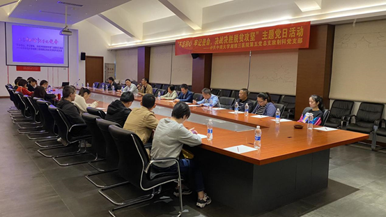 第五党总支书记余希传达了近日习近平总书记赴湖南考察调研重要讲话精神。9月16日至18日,习总书记在湖南省委书记杜家毫、省长许达哲陪同下,先后来到郴州、长沙等地,深入农村、企业、产业园、学校等,就统筹推进常态化疫情防控和经济社会发展工作、谋划“十四五”时期经济社会发展进行调研,强调要“在推动高质量发展上闯出新路子,谱写新时代中国特色社会主义湖南新篇章。”余希书记重点传达了16日习总书记在郴州市汝城县文明瑶族乡沙洲瑶族村“半条被子的温暖”专题陈列馆的讲话,号召所有党员同志传承红色革命基因,牢记初心使命,砥砺奋勇前行。