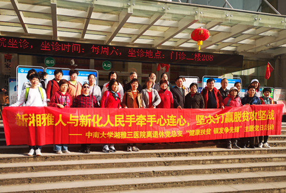 10月23日上午,中南大学湘雅三医院第十二(离退休)党总支在总支书记杨华带领下,赴新化县开展“健康扶贫 银发争先锋”主题党日活动。