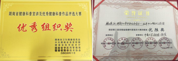 同步举行的还有第三届湖南省健康科普宣讲大赛决赛。中南大学湘雅三医院荣获优秀组织奖,神经内科林婉丽的主题演讲荣获讲解类优胜奖。