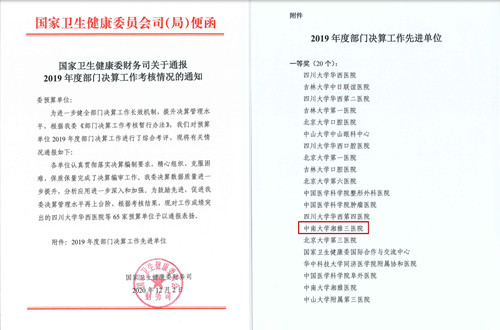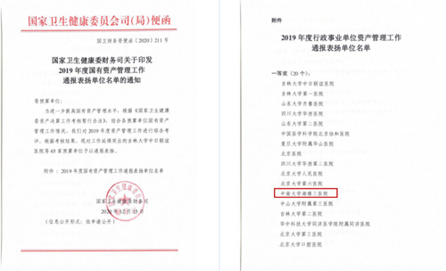 2020年12月2日、15日,国家卫生健康委财务司先后发文通报了2019年度部门决算工作考核和资产管理工作考核情况,医院决算工作连续两年荣获一等奖,资产管理工作继2018年首次获得二等奖后,再创佳绩获得一等奖。