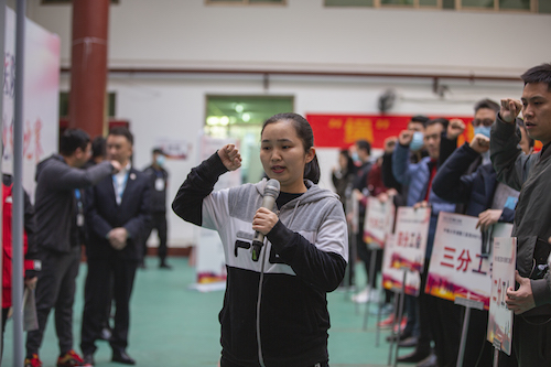 运动员代表郭美英带领全体参赛教职工宣读运动员誓词。